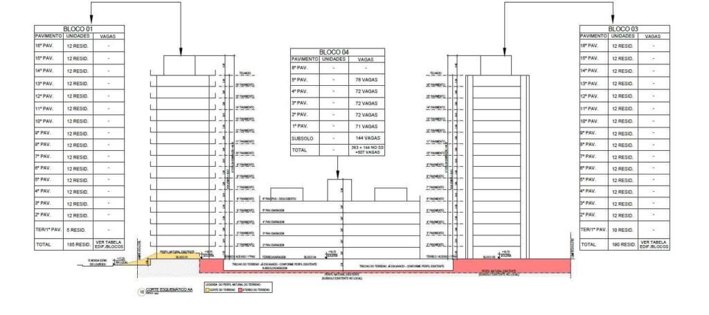 - 1 pavimento subsolo, garagem com 144 vagas cobertas