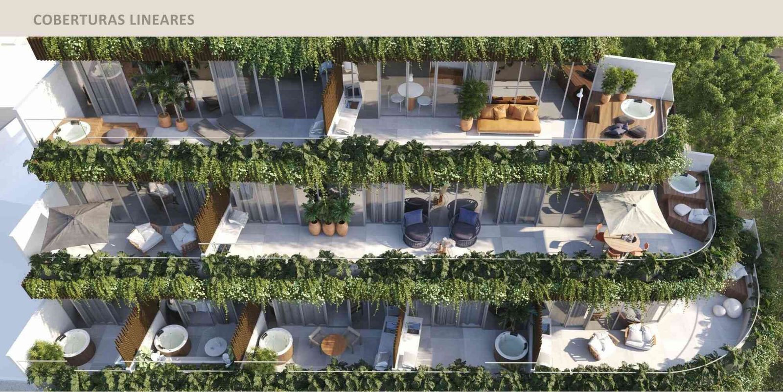 - Tipologias: Studios, Double Suítes, Gardens e Coberturas