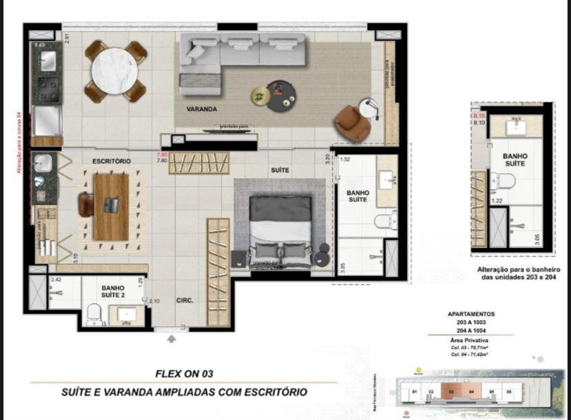 - 36 unidades: double suítes de 72 m² médio;